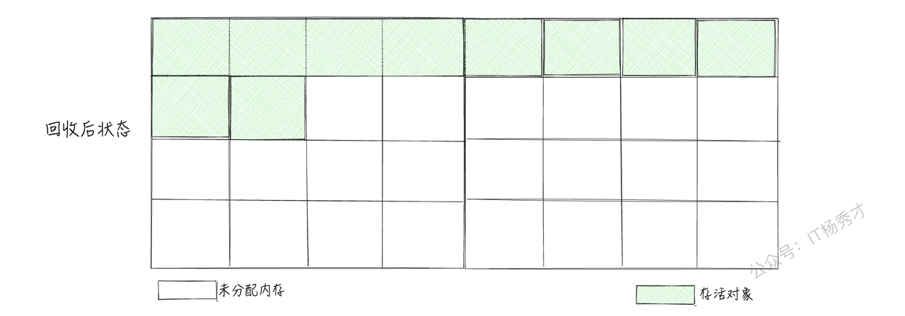整理:接下来,所有存活对象会被移动到一端的空闲空间,按照内存地址进行排序,并更新相应的引用指针。然后,清理掉末端内存地址之外的所有内存空间。
